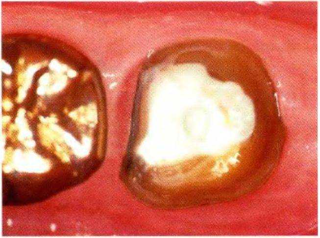 Рис. 1-2g {справа). Вид препарированного зуба после снятия коронки