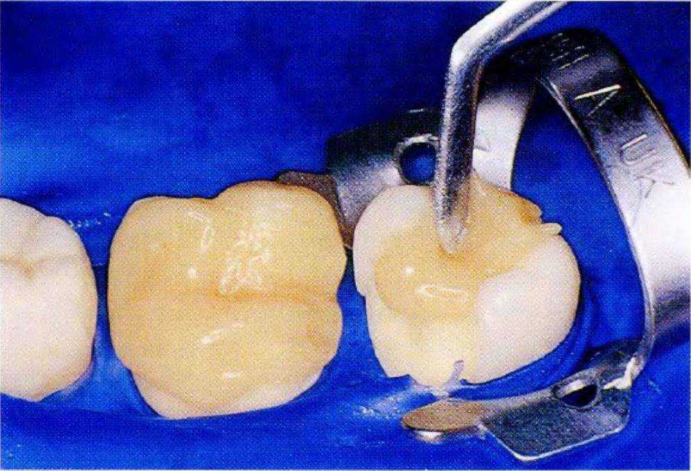Рис. 2-24г. Излишки цемента удаляют шпателем Хайдеманна.