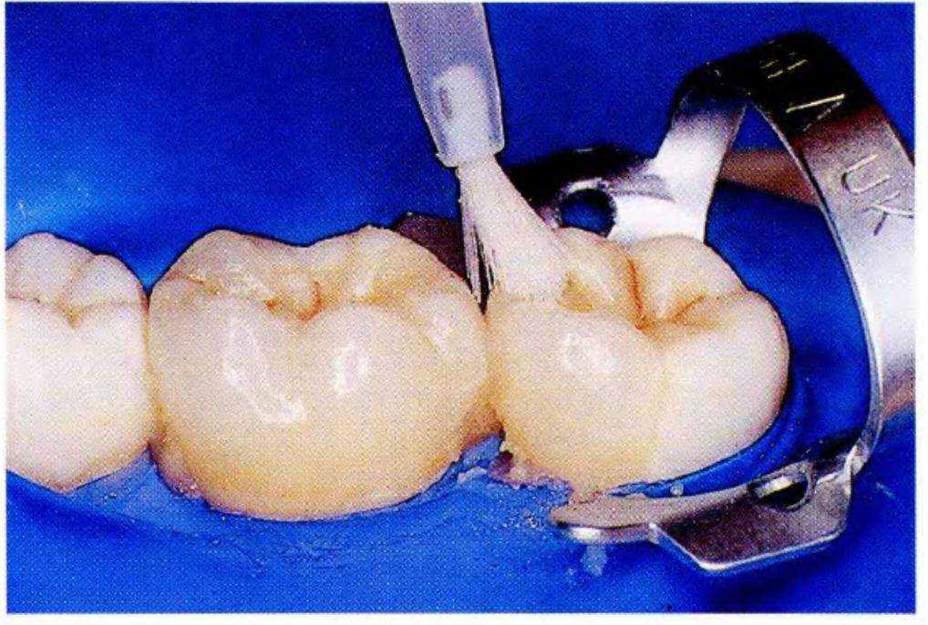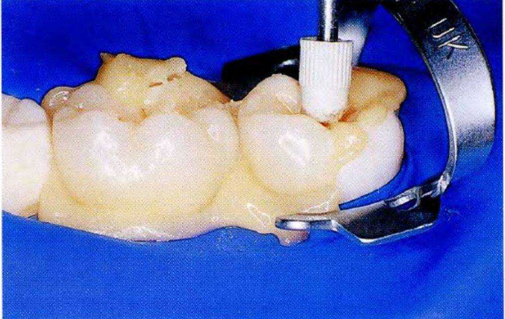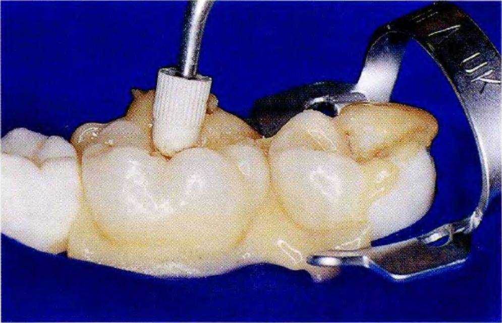 Рис. 2-24t. Остатки цемента вытирают одноразовой щеточкой