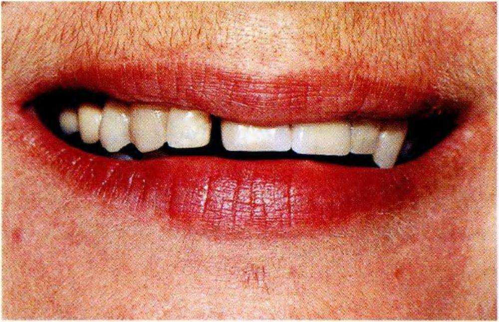 Рис. 2-25Ь. При улыбке визуализируется неэстетичный промежуток между передними зубами