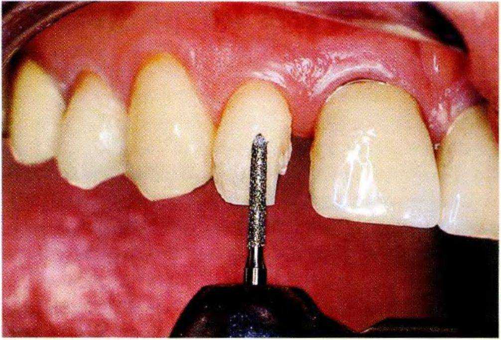 Рис. 2-25д. После промывания и высушивания проверяют состояние препарированных поверхностей