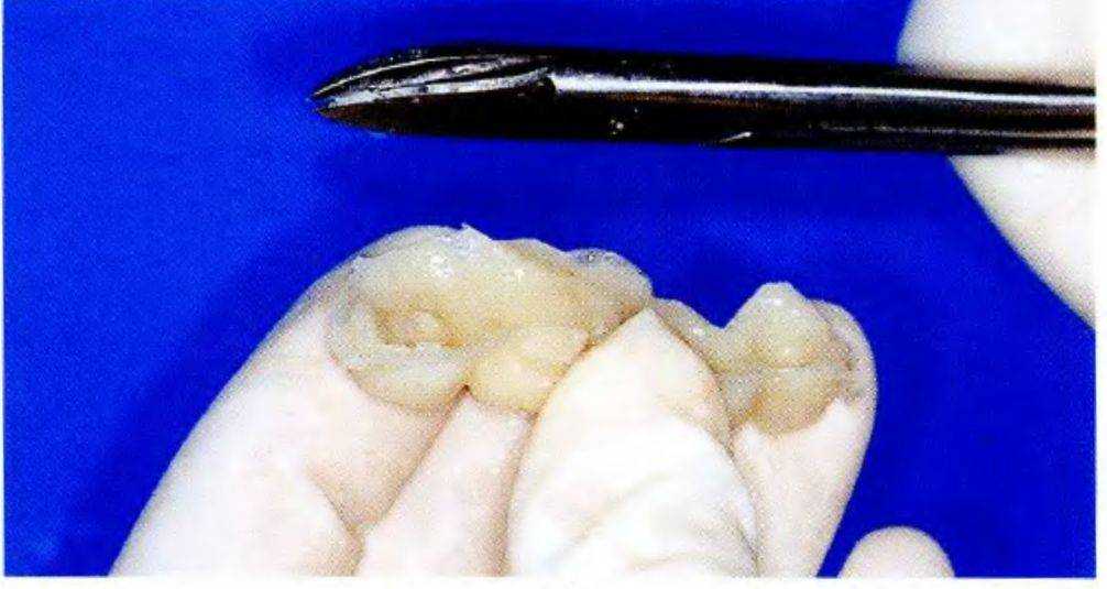 Рис. 3-321. Провизорный мостовидный протез полимеризуют непосредственно на опорных зубах в полости рта