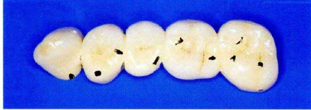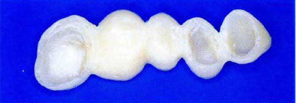 Рис. 3-32i. Внутренняя поверхность подготовленного шаблона мостовидного протеза