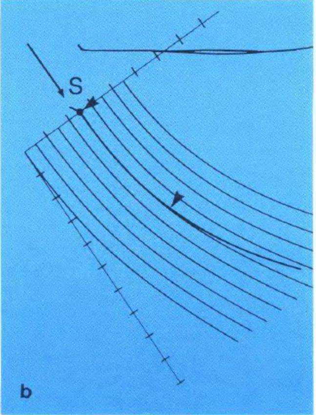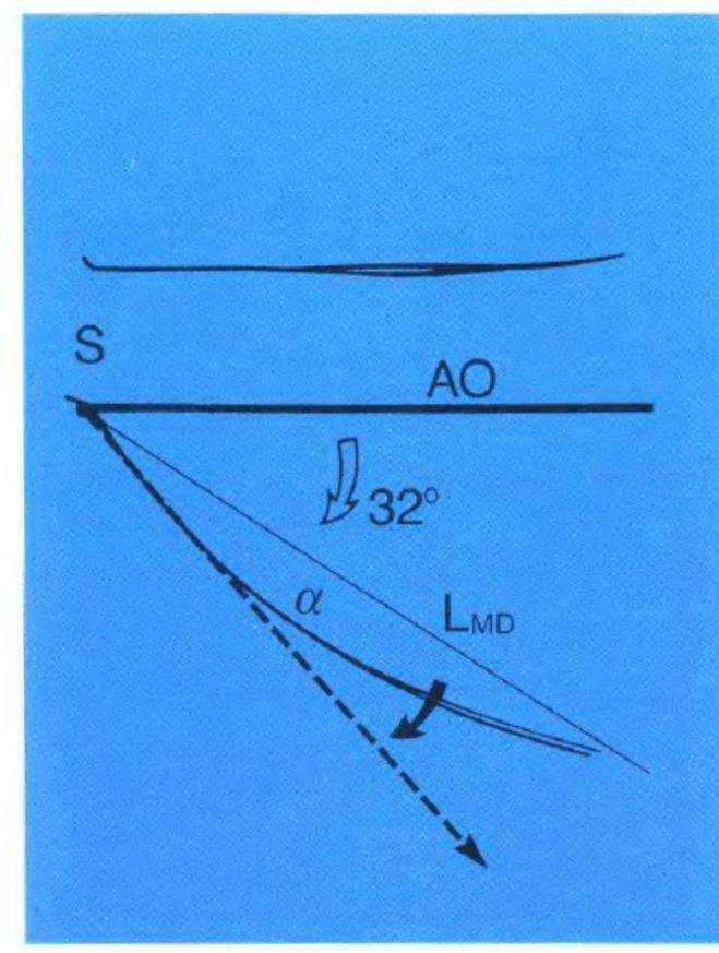 костью (соединительная плоскость = слухоподглазничная (auriculoinfraorbitaf) плоскость - 32°, см. главу 6) и исходной касательной к кривизне добавили к показателям аксиографии с помощью транспортира. При этом исходным ориентиром считали шарнирную осевую точку (рис. 3-381). Значение сх = 4 было получено с помощью формулы, представленной на рис. 3-38т.
