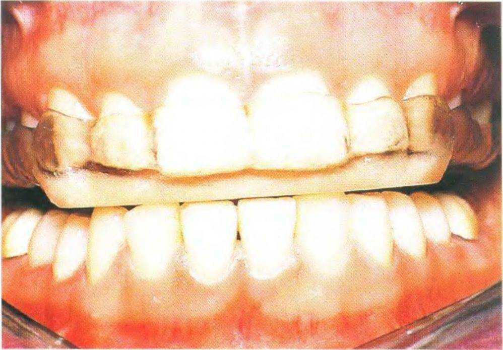 ляющий скольжение зубов нижней челюсти. После затвердевания гребень обрезали до нужной высоты и тщательно отполировали (рис. 3-38t).