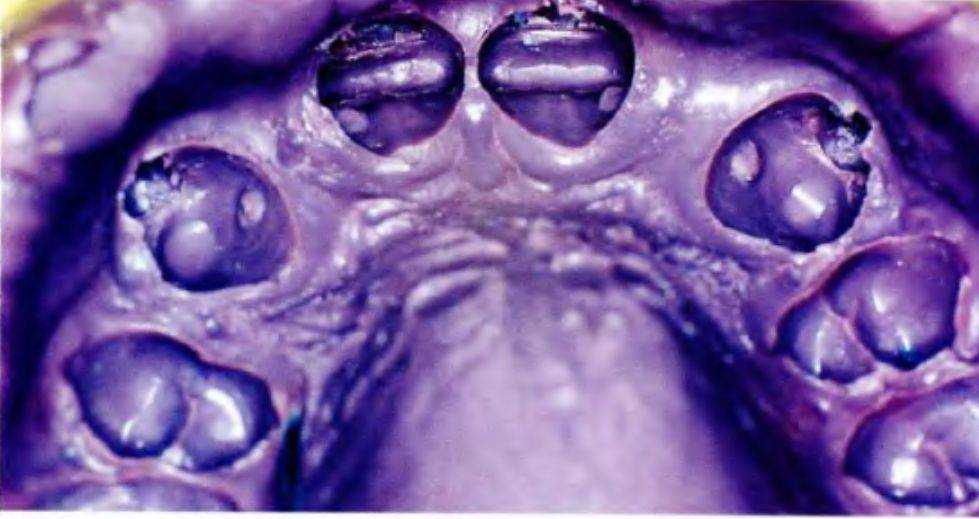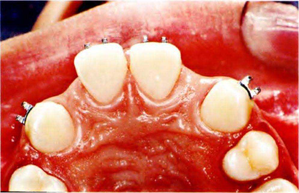 Рис. 5-3m. Небный вид готовых несъемных частичных протезов