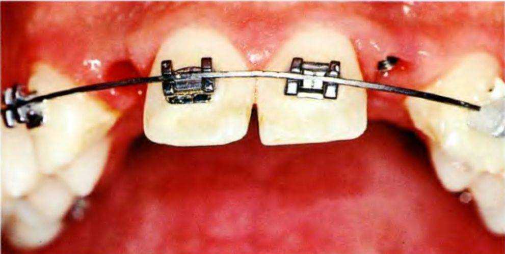 Рис. 5-3w. Фиксированы новые брекеты для дополнительного увеличения пространства с целью последующей установки имплантатов