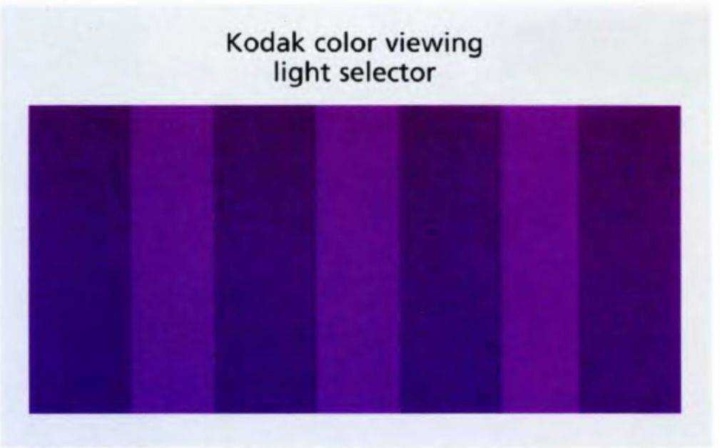 Для правильного определения оттенков идеально рассеянное дневное освещение в период от 10 утра до полудня у северного окна при наличии белых перистых облаков (рис. 6-23). Таким образом, до 10 часов утра цвета приобретают голубоватый оттенок, а позже полудня - красноватый. Оттенок никогда нельзя определять под прямыми солнечными лучами, или при значительной облачности, или в темное время суток.