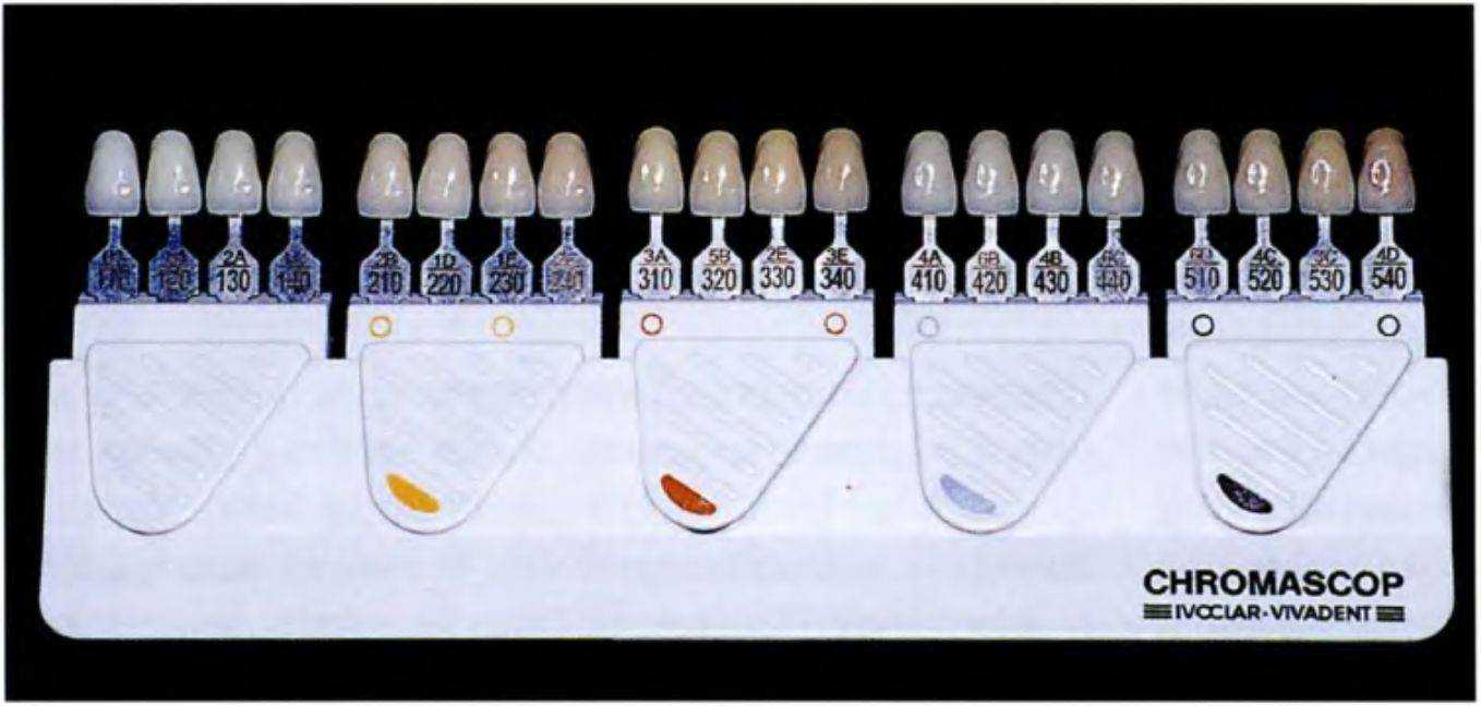Цветовые шкалы Вита Классик (Vita Classic) и Вита ЗД-Мастер (Vita 3D-Master) компании Вита (Vita). Система определения цвета Хромаскоп (Ивокляр Вивадент; Chromascop, Ivodar Vivadent). Система определения цвета Кодак (Kodak Color Viewing Light Selector).