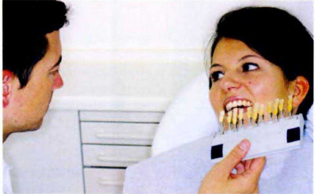 Цвет зуба необходимо определять до начала терапии, поскольку естественные ткани зуба высыхают в ходе лечения (особенно при использовании коффердама), что делает их более яркими (до двух оттенков), чем они есть в реальности. Цвет должен определять специалист (стоматолог или зубной техник), изготавливающий реставрацию.