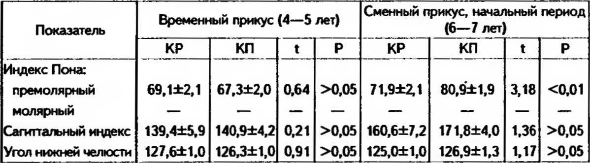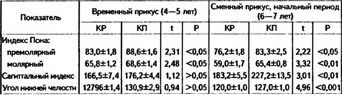 Примечание: во временном прикусе и начальном периоде сменного прикуса "премолярный индекс" определяется по временным первым молярам.