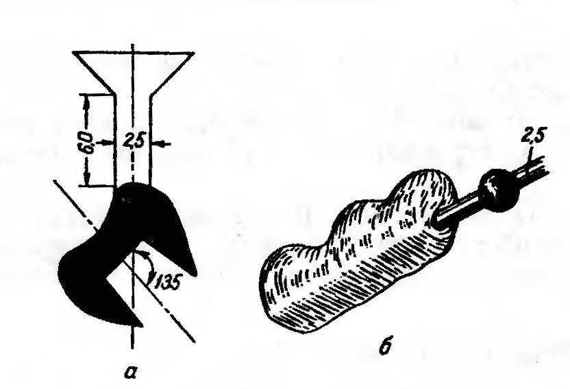 Практически это осуществляется так. При отливке одиночной детали подбирают соответствующий прямой металлический штифт, слегка подогревают (чтобы пальцы ощущали тепло) и вводят в нерабочую часть модели. Если деталь имеет небольшую протяженность, то можно ввести 2 или 3 металлических штифта, скрестив их в одной точке (рис. 50). Такое же расположение предпочтительно и при отливке 2—3 деталей.