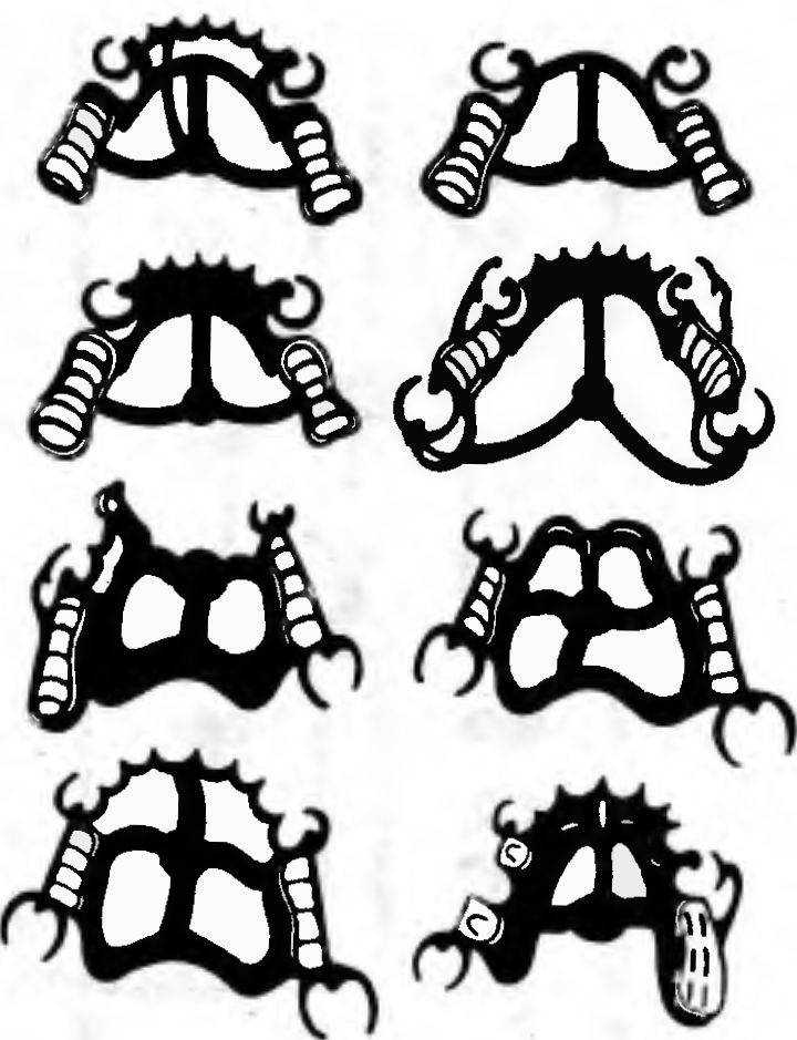 Рис. 49. Расположение литьевых каналов при сложной конфигурации каркаса зубного протеза разновеликой толщины.