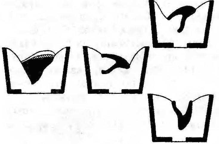Рис. 78. Последовательность и варианты гипсовки восковой композиции для изготовления пластмассовой коронки.