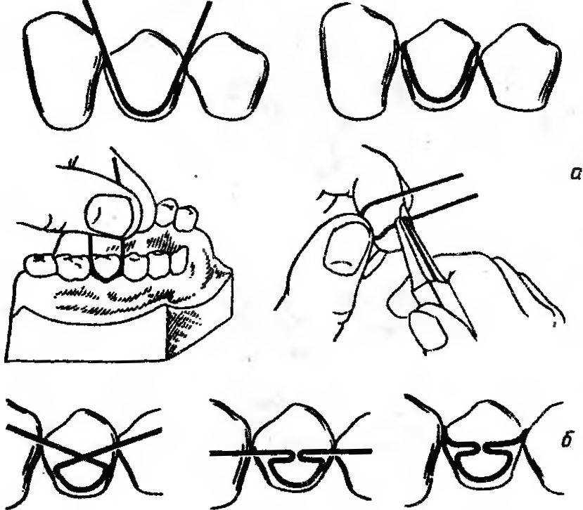 Рис. 226. Последовательность изготовления кламмеров Джексона (а) и Дуйзингса (б).