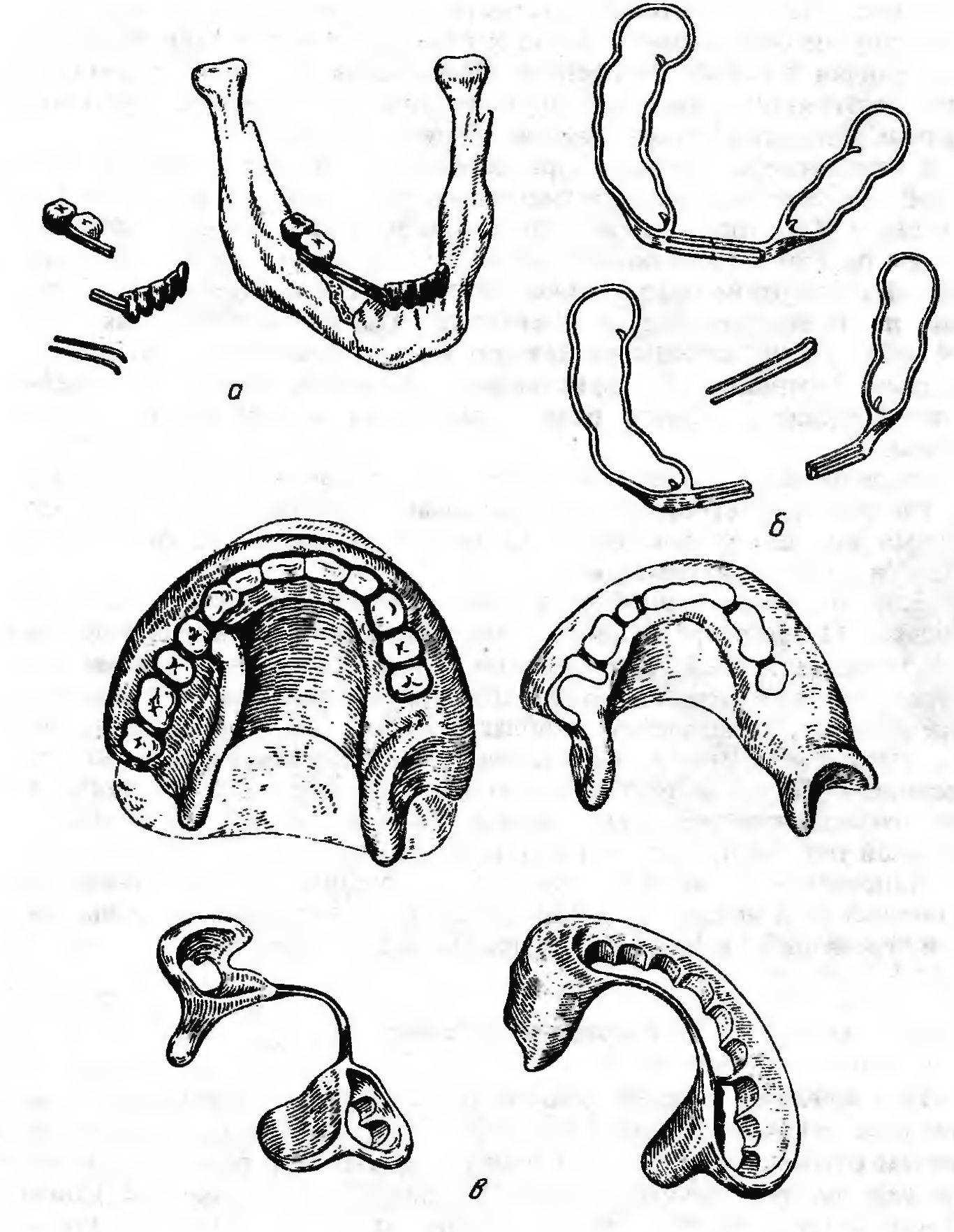 Направлением изгибов рычагов и различным расположением резиновой тяги можно не только фиксировать поврежденную челюсть, но и перемещать ее фрагменты в правильное положение.
